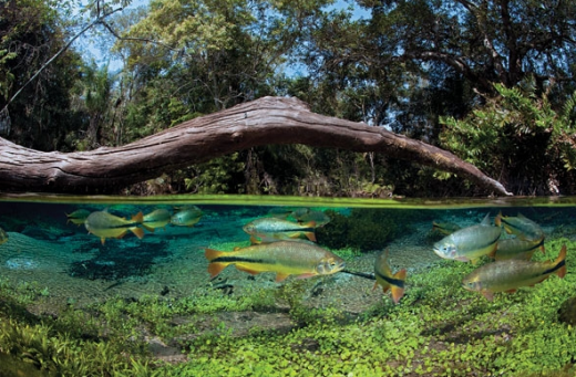 One hand holding the mask and second stage, the other holding gauges and weightbelt. That's how I was taught. My fellow divemaster caught me going in with some textbook form.